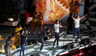 Mam dla Was pierwsze zdjęcia z dzisiejszego występu chłopaków podczas Ceremonii Zamknięcia Igrzysk Olimpijskich, która odbyła się oczywiście w Londynie :-) One Direction, tak jak wcześniej już pisałyśmy, zaśpiewali “What Makes You Beautiful”. Moim zdaniem poradzili sobie znakomicie, a do tego świetnie się prezentowali wizualnie